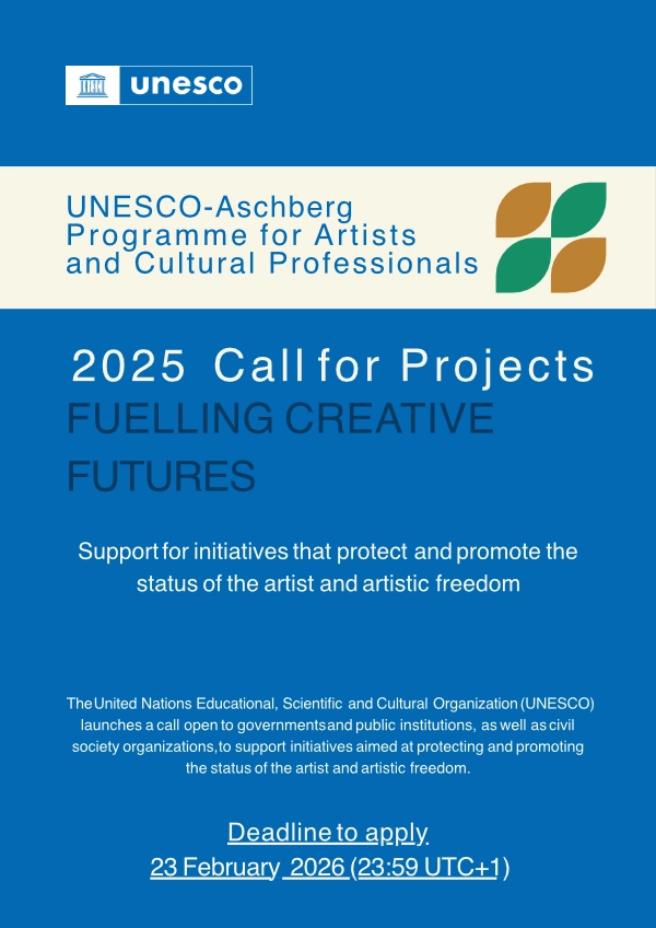 UNESCO je otvorio poziv za prijavu projekata za UNESCO-Aschberg program za umjetnike i kulturne stručnjake. Poziv je otvoren za vlade i javne institucije [...]